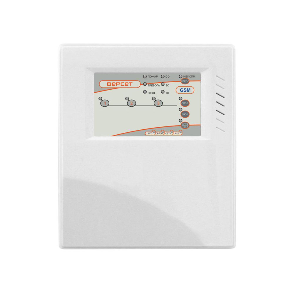 Контрольный прибор «Сибирский Арсенал» «Версет-GSM 03 ВМ» рассчитан на три шлейфа сигнализации. Совместим с прибором мониторинга «Ветта-50 GSM». Оборудован четырьмя реле, тремя выходами линий оповещения. Оповещает о тревоге и других событиях сигналами световых и звуковых оповещателей, табло «Выход», SMS-сообщениями на номера пользователей, контактами реле.