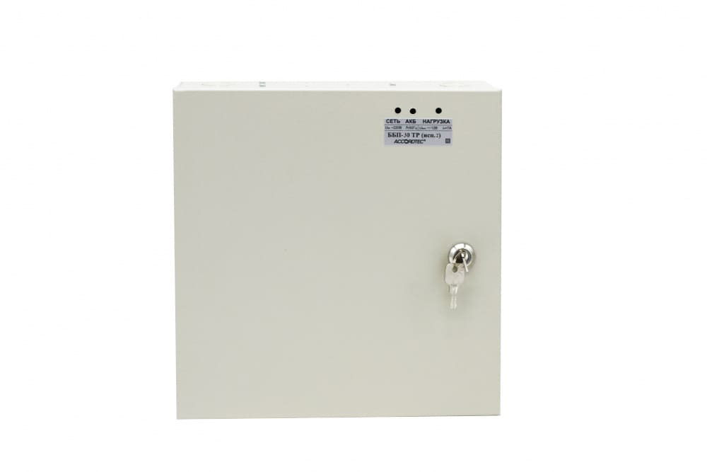 Блок бесперебойного питания AccordTec ББП-80 ТР исп.1 без задержки переключается на питание от аккумуляторной батареи (в комплект не входит) в случае сбоя энергоснабжения. При восстановлении напряжения возобновляет основной режим.