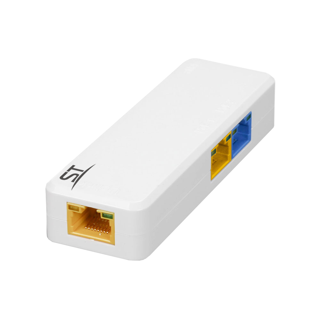 Приемопередатчик ST-VBP2, Удлинитель сигнала по UTP кабелю. Предназначен для приема и последующей передачи данных по проводным UTP линиям связи 5-й и 6-й категории, Порты подключения.Вход: разъем RJ-45 (PoE + Данные) -1 шт, Порты подключения.Выход: разъем RJ-45 (PoE + Данные) – 2 шт , Скорость соединения: 10/100 Мбит/с, Макс. пропускная способность: 100Мбит/с каждый порт, Сетевые стандарты: IEEE 802.3, IEEE 802.3u, IEEE802.3af/at/bt, Потребляемая мощность: 0.5Вт, От -45°С до 60°С, Габаритные размеры ИП: 102мм*34мм*20мм, Требование к кабелю: 8-жильный кабель категории 5 и выше (≤100м)