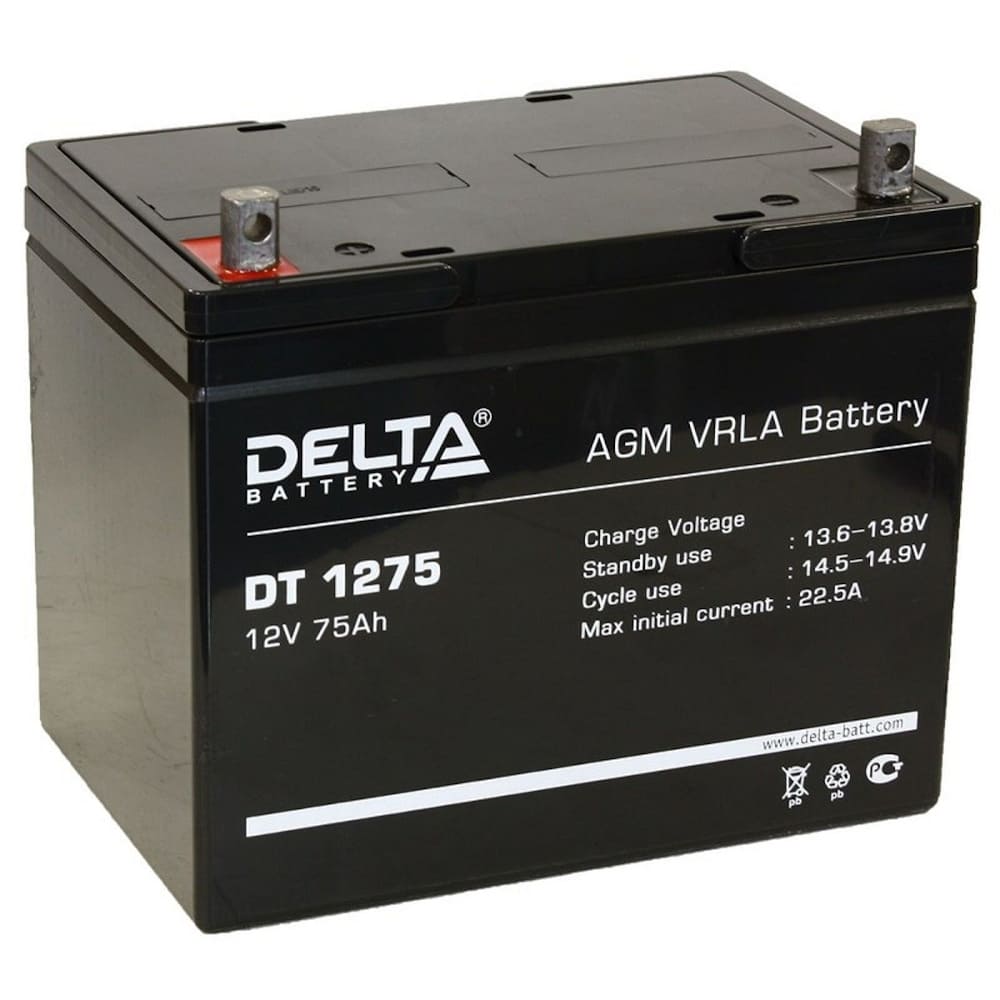 Герметичный свинцово-кислотный аккумулятор Delta DT 1275 выполнен по технологии AGM: электролит между электродами находится не в жидком, а в абсорбированном состоянии. Абсорбер представляет собой стекловолоконный микропористый заполнитель. Предусмотрен клапан, сбрасывающий избыточный газ при критическом давлении. Конструкция обеспечивает высокий ресурс и безопасность работы за счет исключения риска утечки серной кислоты и взрыва, стойкости к вибрации. Благодаря рекомбинации газа до 99 % АКБ не нуждается в обслуживании.