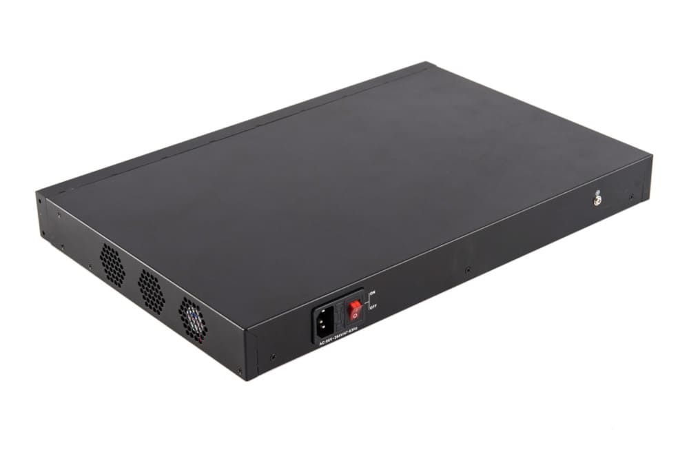 Неуправляемый Fast Ethernet PoE-коммутатор «Бастион» Skat PoE-16E-2G-2S укомплектован восемью портами RJ-45 с поддержкой PoE и четырьмя гигабитными комбо-портами (двумя Uplink и двумя SFP). Слоты в комбинированных портах одновременно не работают. Общий бюджет РоЕ — 260 Вт, на порт — 30 Вт. Буфер пакетов — 4.1 Мбайт. Размер MAC-таблицы — 8192 адресов. Расстояние передачи от портов RJ-45 и Uplink-слотов в Combo-портах — 100 м, от SFP-слотов в Combo-портах — до 20 км в зависимости от SFP-модулей (в комплект не входят). Наработка на отказ — 50 000 ч.