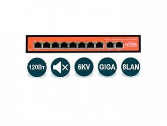 Коммутатор WI-PS308G оснащён десятью портами 1000Base-T, из которых семь поддерживают стандарт питания PoE (802.3af/at) и один порт - HiPoE (802.3bt). Устройство включает функцию Watchdog, которая обеспечивает автоматическое обнаружение неисправного оборудования и перезагрузку питания PoE на соответствующем порту.