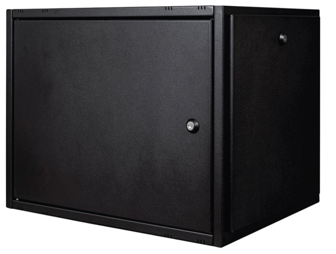 Настенный телекоммуникационный шкаф стандартного размера 19 дюймов с вместимостью 12 единиц (U) оснащен металлической дверцей и обладает полезной глубиной 434 миллиметра.