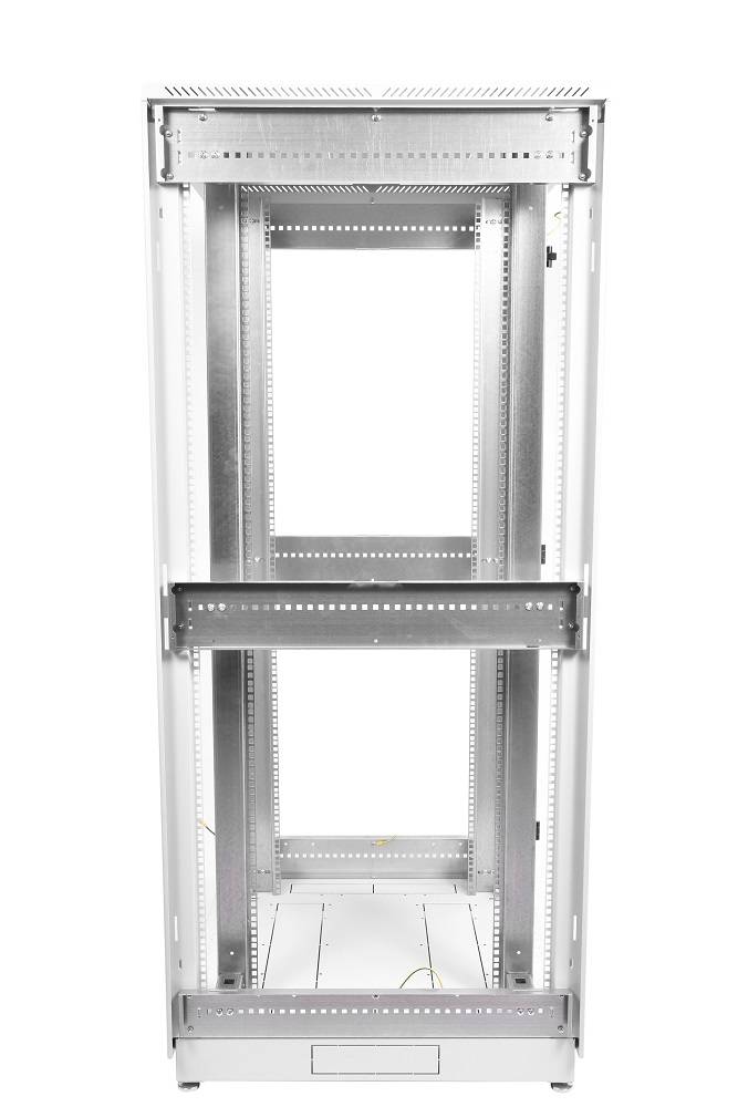 Шкаф поставляется с четырьмя винтовыми опорами, компенсирующими неровности пола. Габариты — 800×800×1850 мм, вес — 116.73 кг. Защита собранного шкафа от влаги и пыли — IP20.