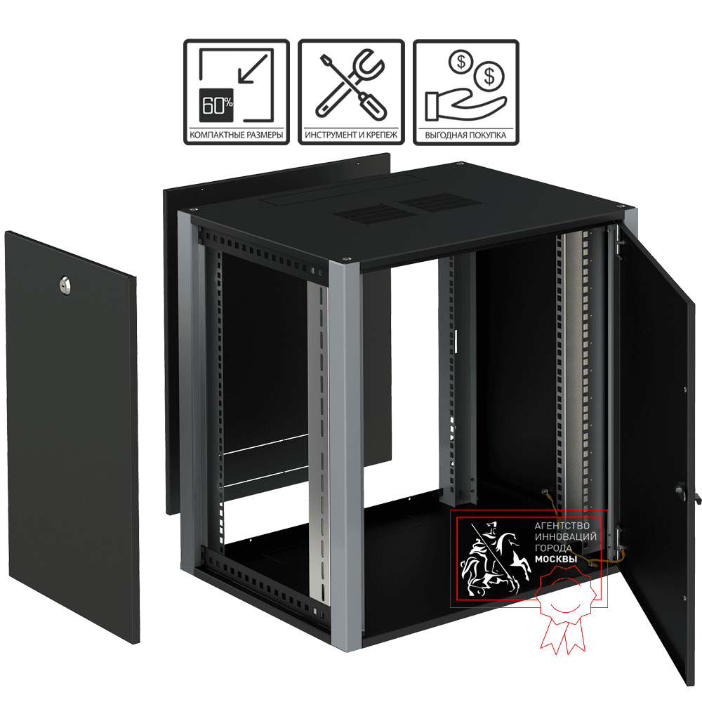 Конструкция шкафа разборная и состоит из крыши, основания, четырех стоек, двух боковых стенок, задней стенки и цельнометаллической двери с универсальным типом навески. Шкаф соответствует требованиям ГОСТ 32127-2013 и ГОСТ 28601.1.