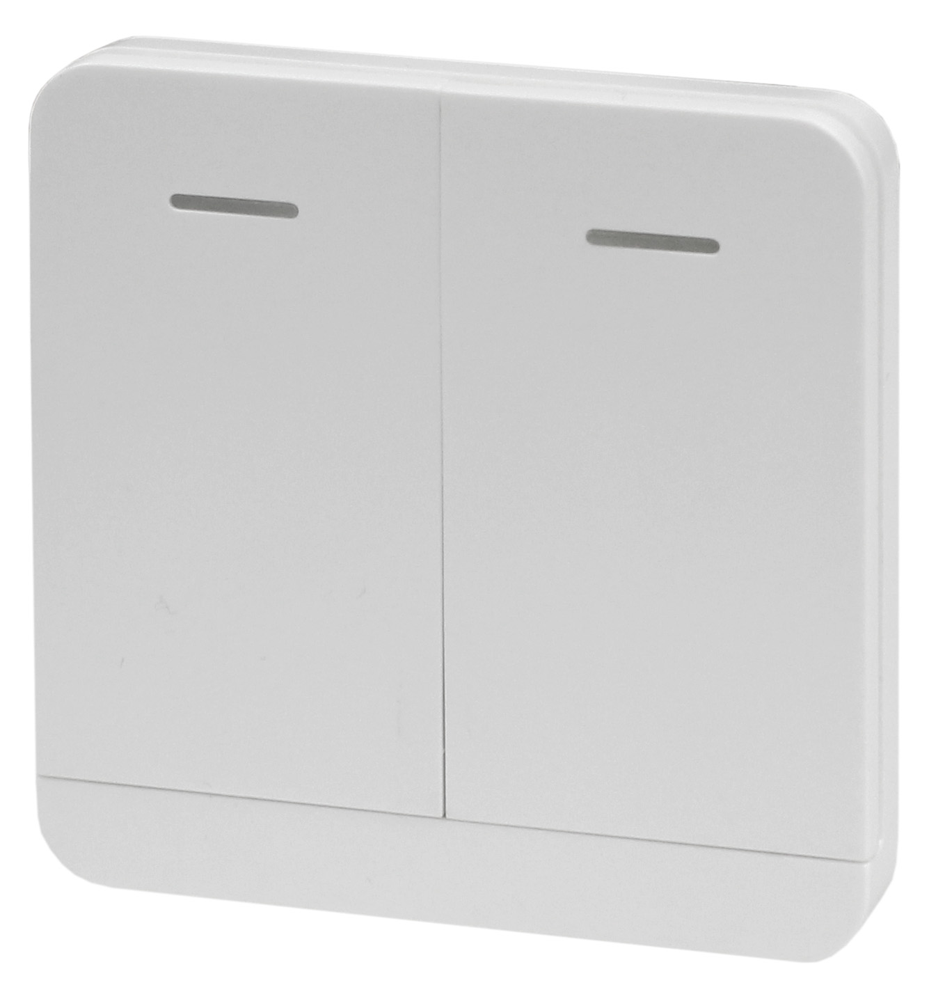 Передатчик оснащен двумя клавишами и корпусом для накладного монтажа. Каждая кнопка снабжена индикатором срабатывания.