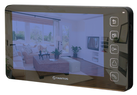 Видеодомофон TANTOS Prime SD (Mirror) black – это стильное решение для интерьера в темных тонах. Монитор с диагональю 7 дюймов и высоким разрешением, оснащенный сенсорными кнопками, позволяет подключать до двух вызывных панелей и двух дополнительных видеокамер.