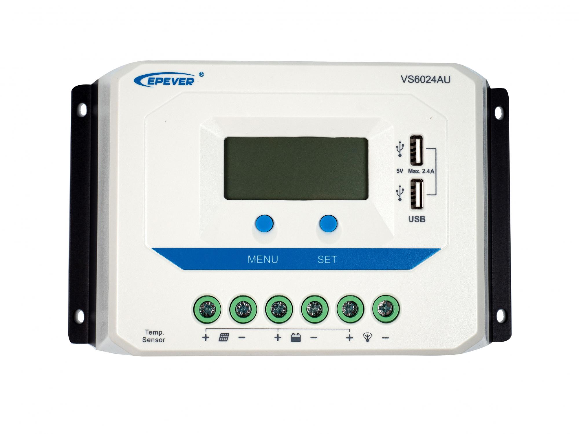 Контроллер заряда VS6024AU имеет встроенный ЖК-дисплей и USB-порт
